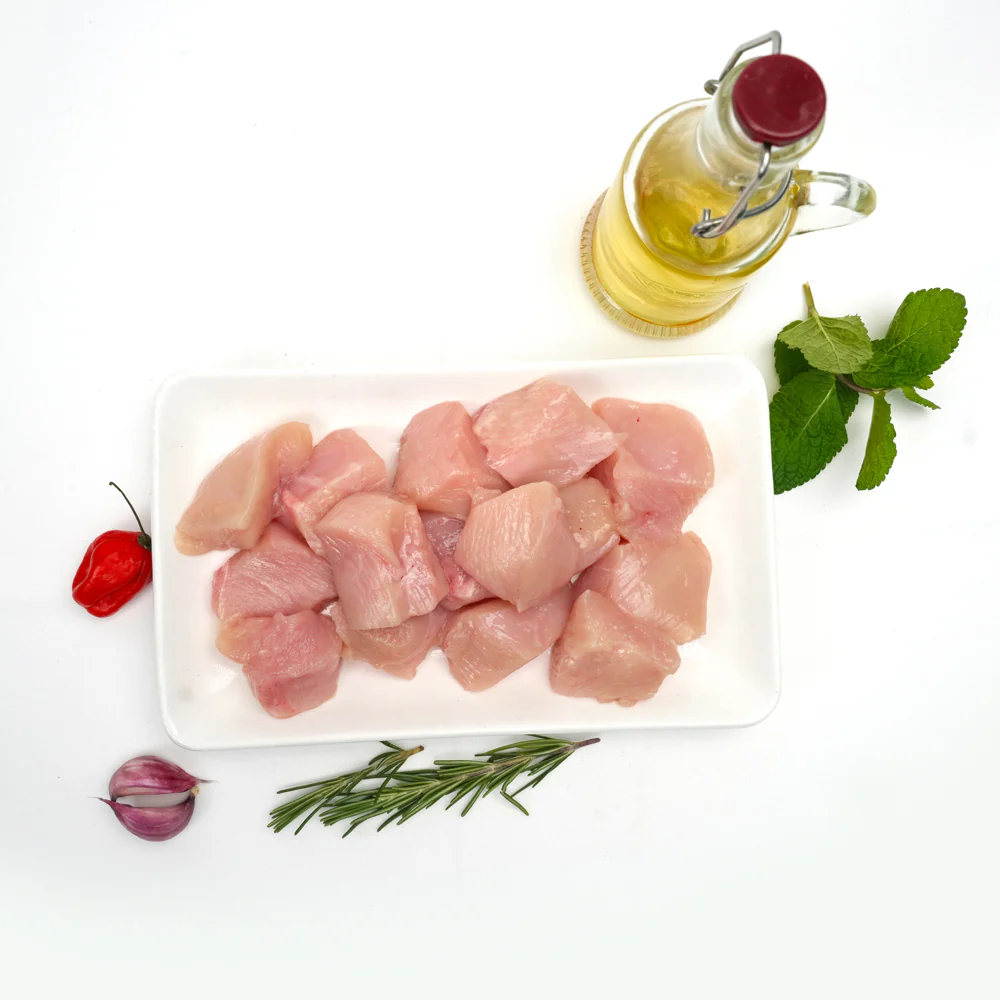 Enjoy the versatility and tenderness of Chicken Breast Dice from Spice Village Halal Meat & Foods, sourced from the finest farms in the United Kingdom. Our halal Chicken Dice is expertly cut into perfect bite-sized pieces, making it ideal for stir-fries, curries, salads, or skewers. Fresh, never frozen, and prepared to meet the highest halal standards, our Chicken Dice ensures premium quality and flavor in every bite. Make your cooking easier and more delicious with our halal Chicken Dice—order today for a tasty and wholesome dining experience!